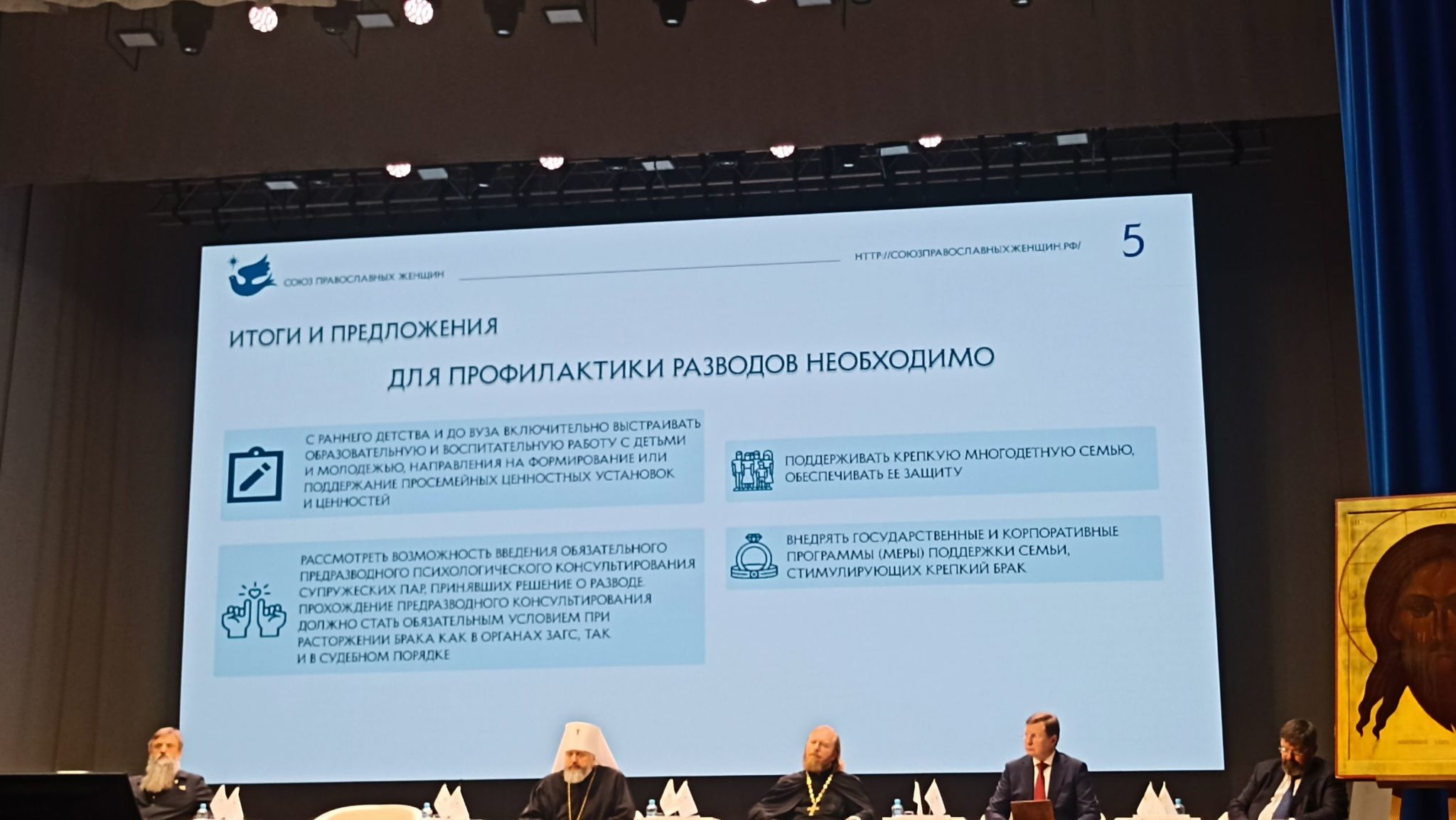 Член Общественной палаты Российской Федерации, сопредседатель международной общественной организации «Союз православных женщин» Наталья Вильевна Дмитриевская подчеркнула, что причины разводов кроются в разных факторах. Она предложила усилить работу с детьми и молодежью в области семейных ценностей, ввести обязательное предразводное консультирование и популяризировать семейные ценности, а также отметила необходимость поддержки семей на всех уровнях власти.