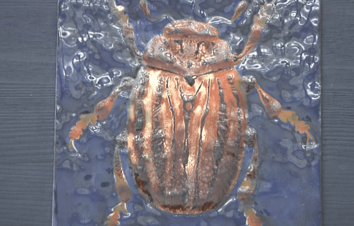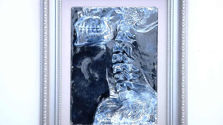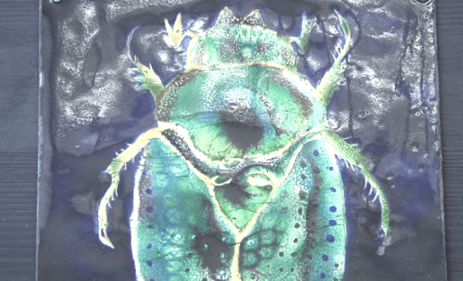 Экспозиция очень разнообразная и разноплановая. Здесь и масляная живопись, и графические работы, и скульптура, и керамика, а также эпоксидная смола и горячая эмаль. Например, очень реалистичным получился рентген и блестящие жучки Алины Вараксиной.