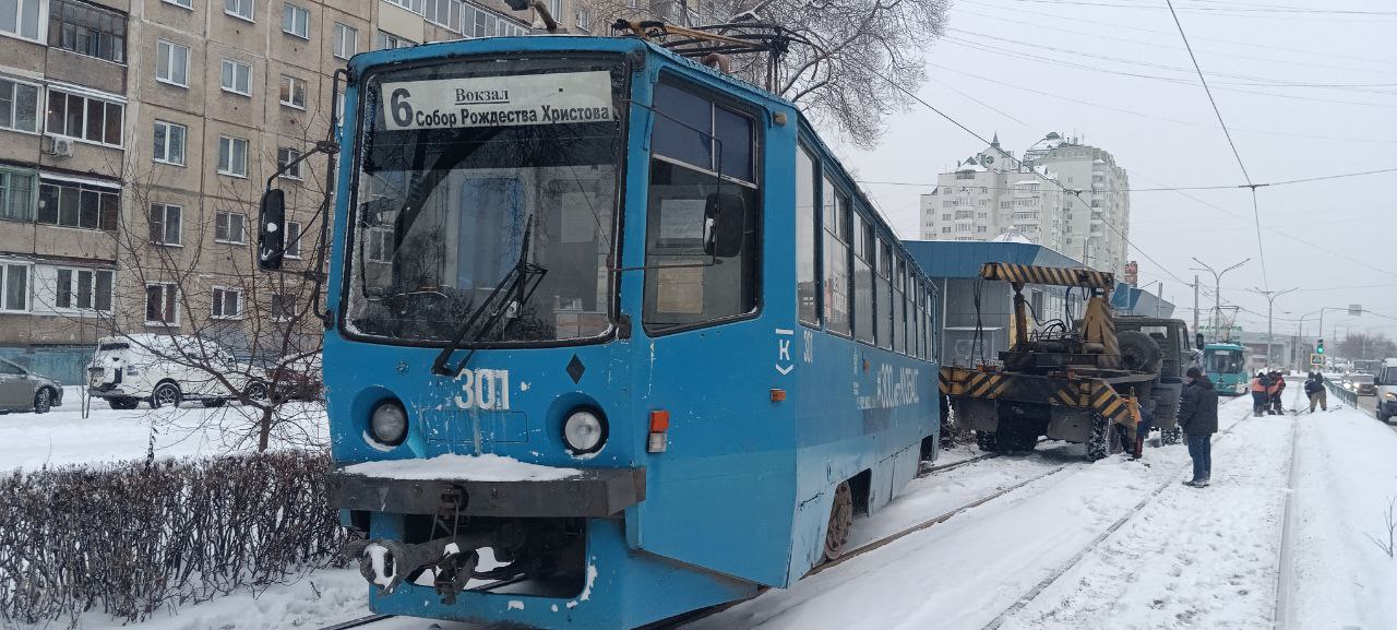 Сегодня в южной столице Кузбасса сошел с рельсов трамвай № 6, следовавший из Кузнецкого района до вокзала. Авария произошла в районе Левого берега на улице Дружбы.