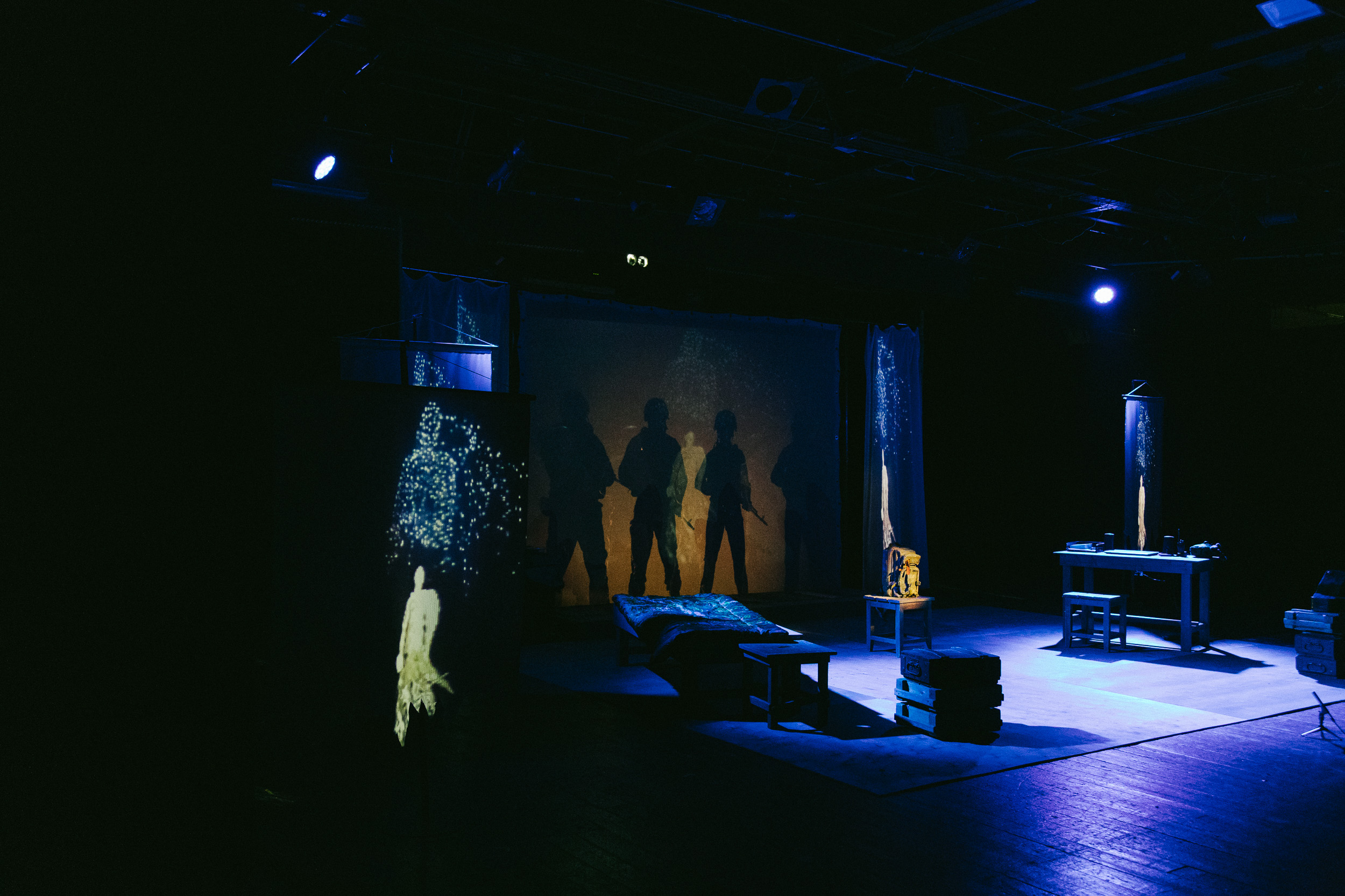 Зал «Звездный» кемеровского драмтеатра. Камерная обстановка. Действие на сцене разворачивается, когда зрители ещё только заходят в зал и в полумраке пытаются найти свои места.