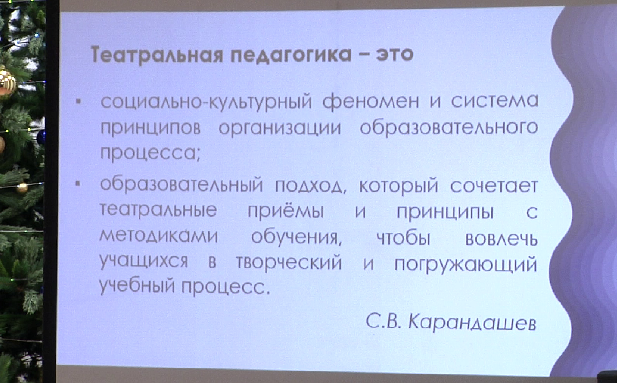 – Самое главное, я считаю, в театре это, наверное, то, что каждый может ошибиться, и это не страшно. И, вот, когда урок построен в рамках с использованием театральных технологий, с использованием театральных методов и приемов, происходит, наверное, какое-то непрерывное взаимодействие учителя и ученика, коллектива в целом, и урок, наверное, часто можно считать успешным, – рассказала Ксения Щербакова.