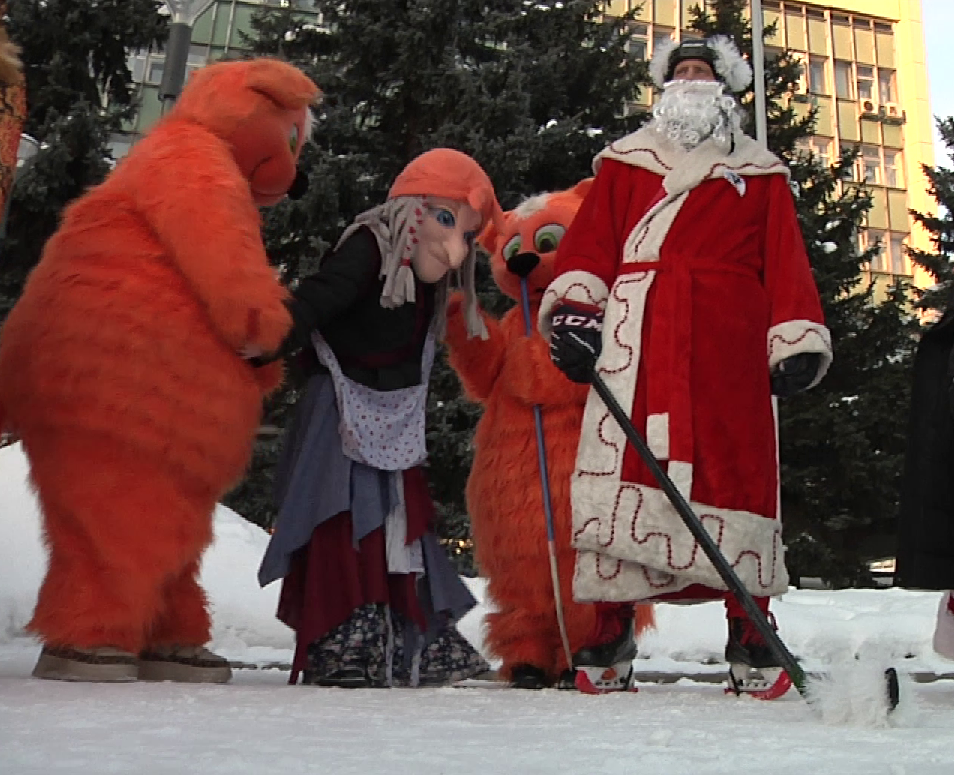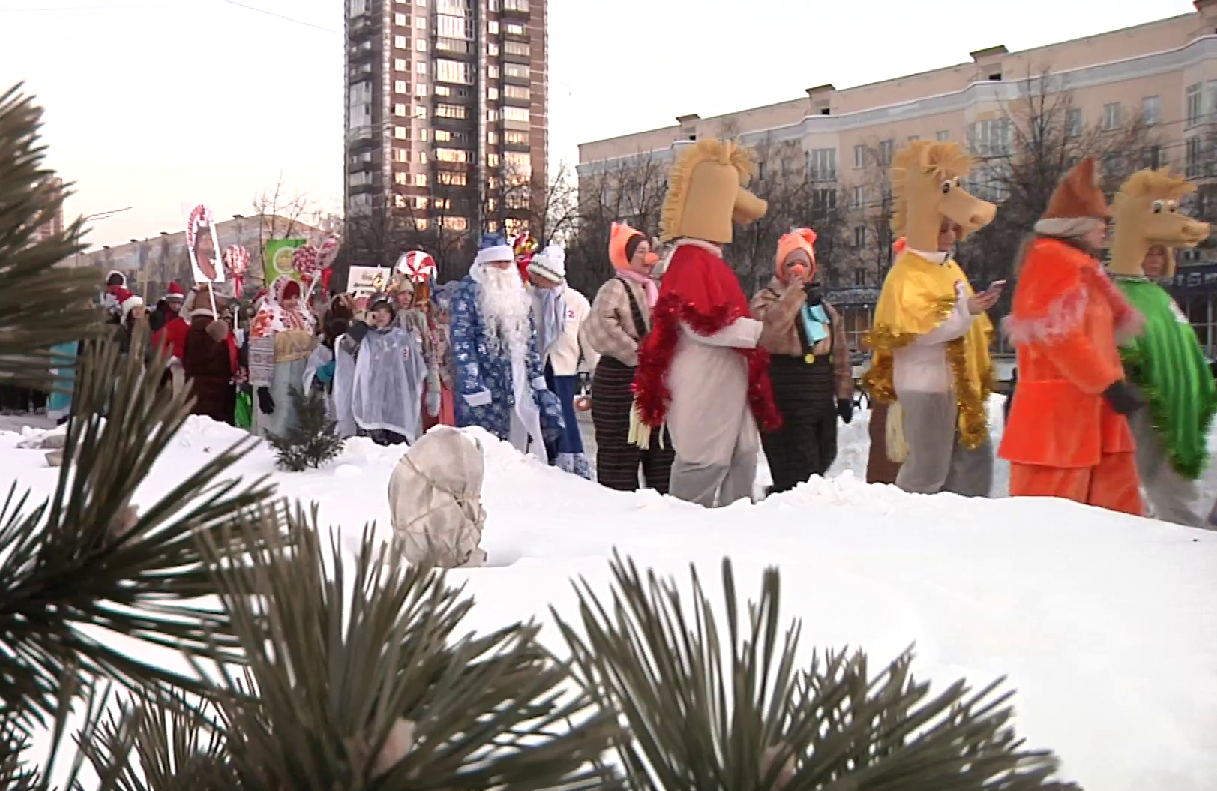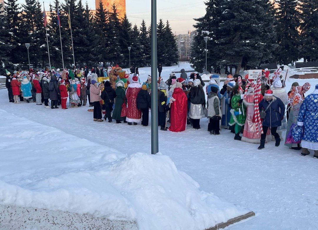 Кого только не встретили сегодня новокузнечане на главной улице города: и трех поросят, и Змея Горыныча, и Бабу Ягу, а еще зайчиков, белочек, лошадок, Крокодила Гену, Снежинку, Елку, белого медведя. Все они сопровождали шествие Дедов Морозов, которое стартовало от мэрии, а завершилось на площади торжеств Центрального района. В поддержку всем сказочным героям выступили также активные пенсионеры и участницы клуба «Путь к долголетию». Они прошагали в параде со скандинавскими палочками.