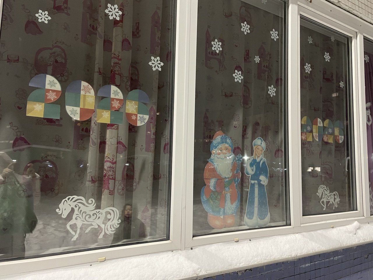 Поражают своим безудержным креативом работники дошкольных учреждений. Их творческому подходу можно только позавидовать, настолько все выглядит ярко и стильно. Можно долго рассматривать разнообразные фигурки из бумаги на окнах. Например, сколько снежного дыма валит из маленького ажурного домика, а какие причудливые резные лошадки скачут рядом с Дедом Морозом и Снегурочкой. Ну и как же не улыбнуться в ответ на приветственный жест забавного снеговика, который каждое утро буднего дня встречает ребятишек в садике.