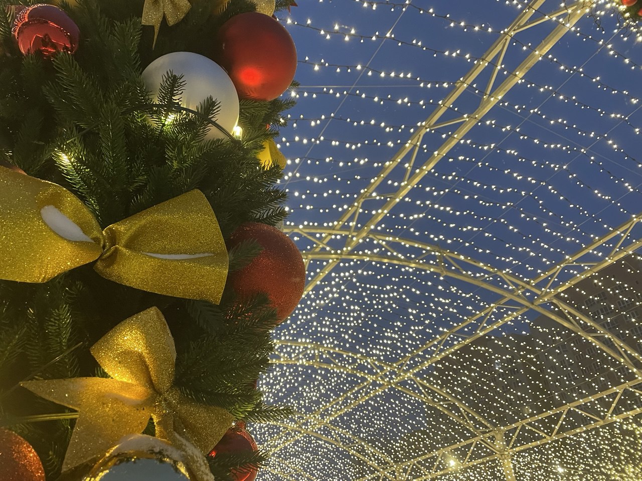 В этом году Новокузнецк в дополнение к привычным районным елкам получил еще одно новогоднее пространство. В сквере Ермакова теперь каждое утро и каждый вечер можно прогуляться под сияющим золотым небом. А в созданном на месте фонтана павильоне «Зима» во время каникул пройдет еще немало праздничных мероприятий.