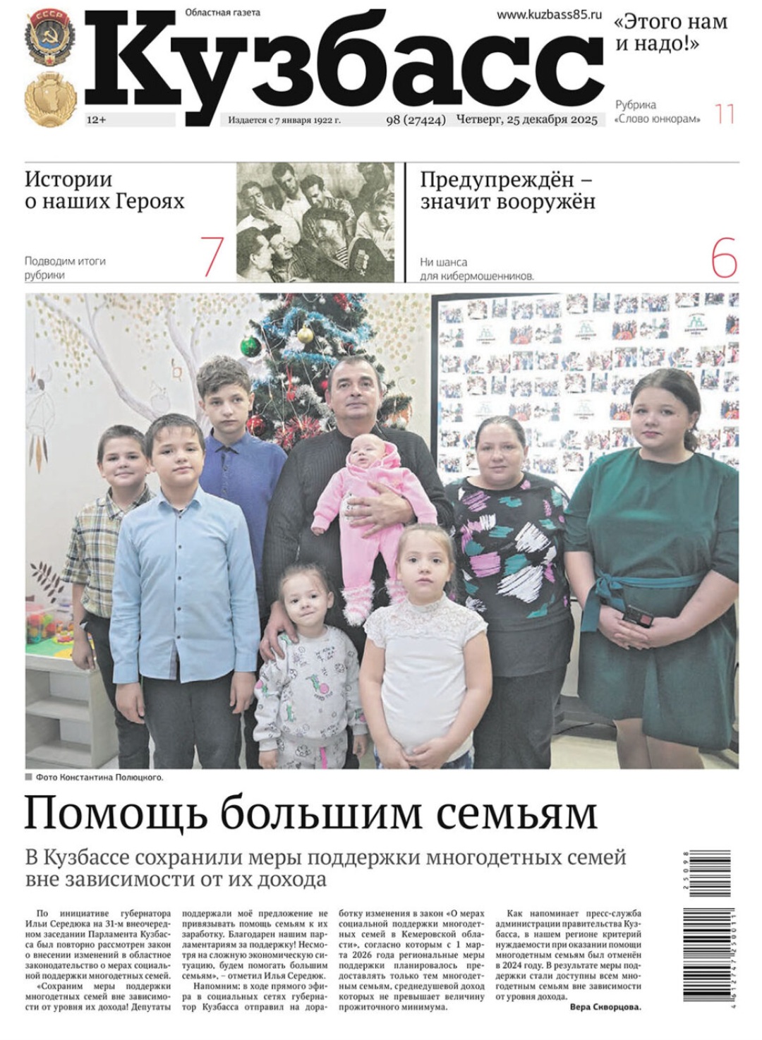 Между тем ранее наш портал сообщал: сайт газеты «Кузбасс» занял второе место в престижном профессиональном конкурсе «СМИротворец». Награждение победителей состоялось в ноябре 2025-го в Москве.