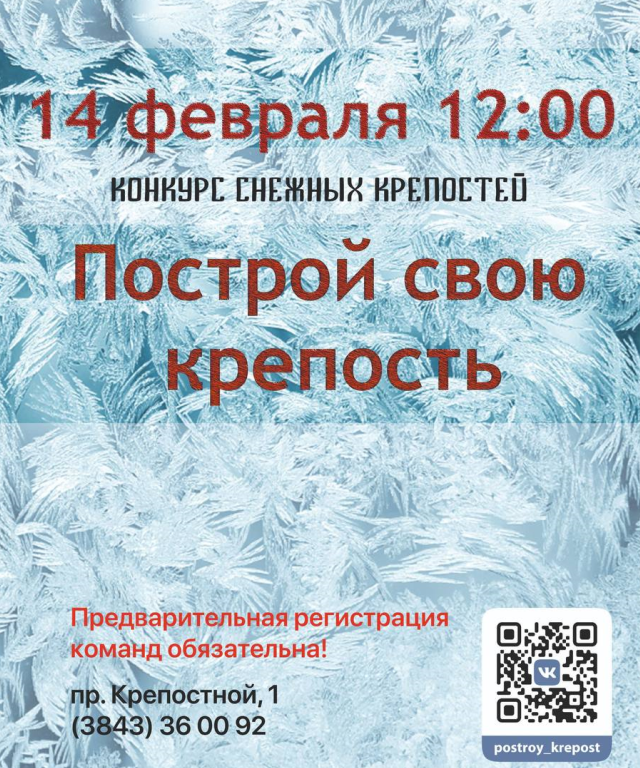 В Новокузнецке этой зимой в восьмой раз пройдет конкурс «Построй свою крепость». Организаторы объявили о старте приема заявок. К участию приглашают семейные команды, либо трудовые и дружеские коллективы. Оговариваются только следующие условия: состав команды от 5 человек и возрастное ограничение от 5 лет и старше.