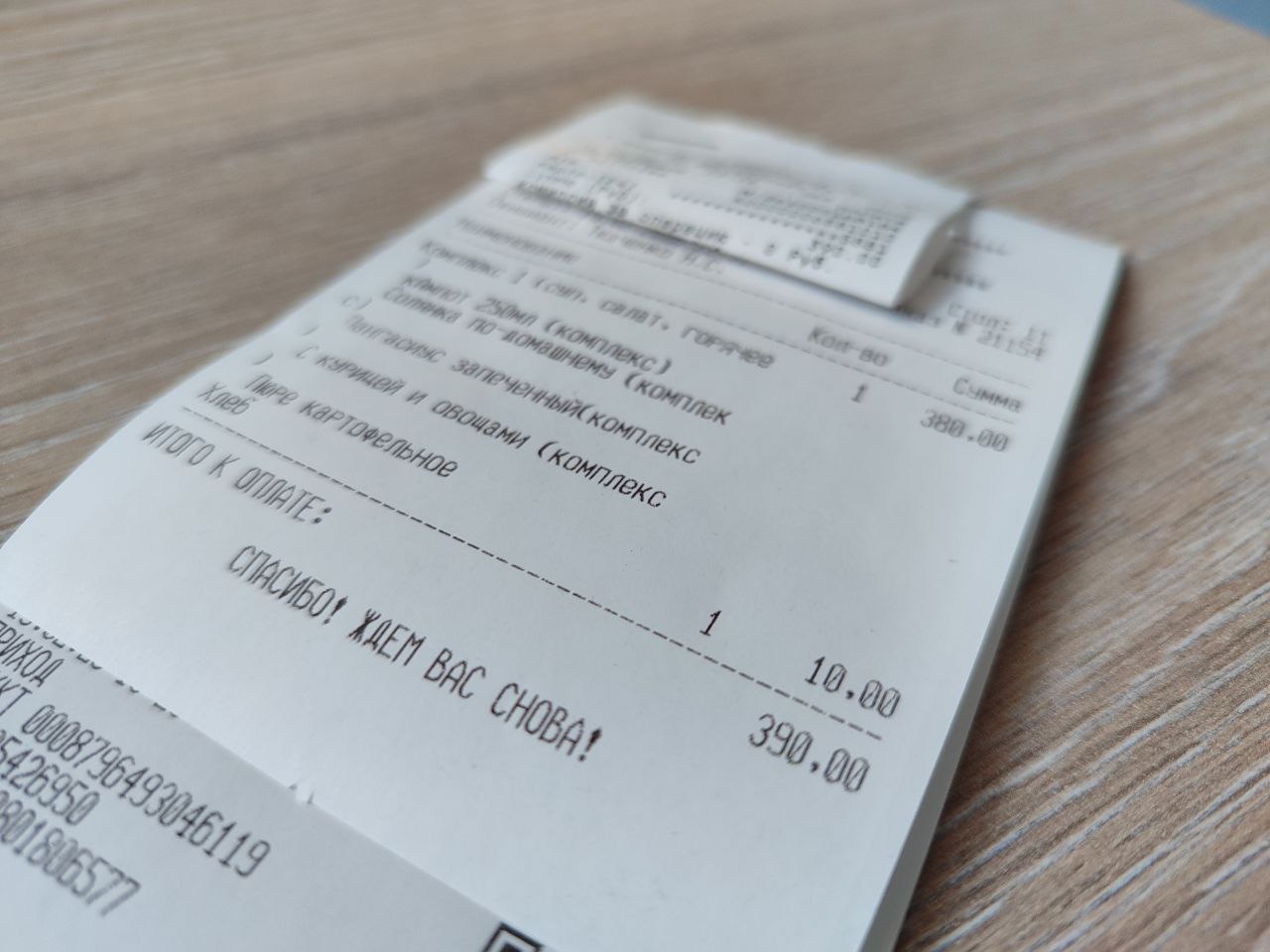 Здесь долго разглагольствовать мы не будем, поскольку цен основного меню нам увидеть не удалось, и единственная цифра, которой мы владеем — это стоимость бизнес-ланча. Обошёлся он нам в 390 рублей (комплекс – 380 рублей и хлеб – 10 рублей). Много ли это для обеда из трёх блюд и напитка — тут, конечно, уже решает каждый сам. Ну а наша наша цель — уложиться в 500 рублей — выполнена с лихвой.