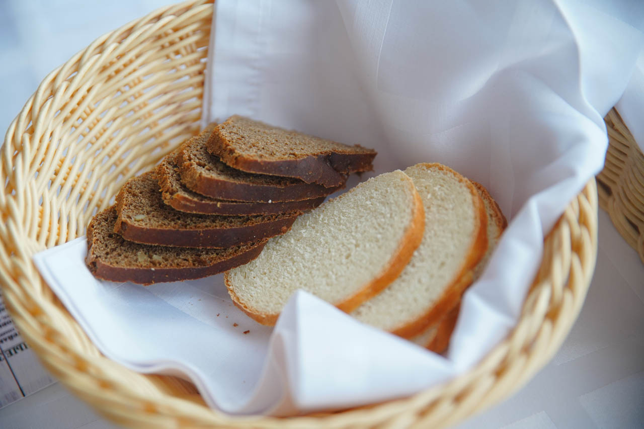 После заказа нам на стол сразу поставили корзину с хлебом — в ней лежали ломтики белого и черного хлеба. Приборы уже находились на столе вместе с тарелками и бокалами. Через пару минут принесли напиток, а вот еду свою мы ждали долго, учитывая, что мы были практически единственными посетителями и ждали мы всего одно, довольно простое блюдо. От заказа до его подачи прошло 22 минуты. Это вписывается в регламент подачи горячего, но не будем забывать, что мы, к тому же, пришли на обед.