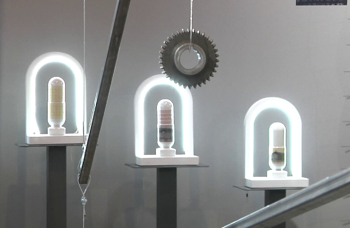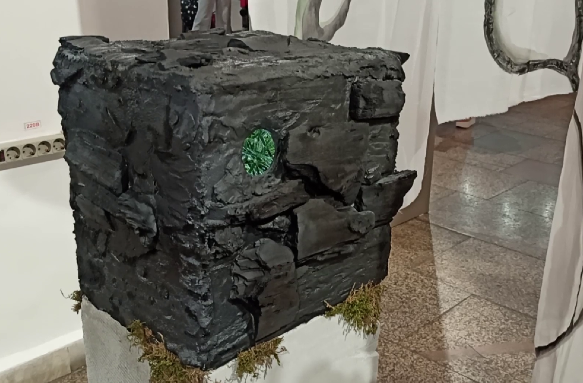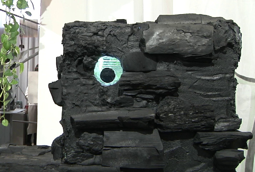 В путешествие сквозь сотни миллионов лет зовет инсталляция томской художницы Анны Шнурко, показавшей путь от реликтовых растений к углю, металлу и городу-саду.