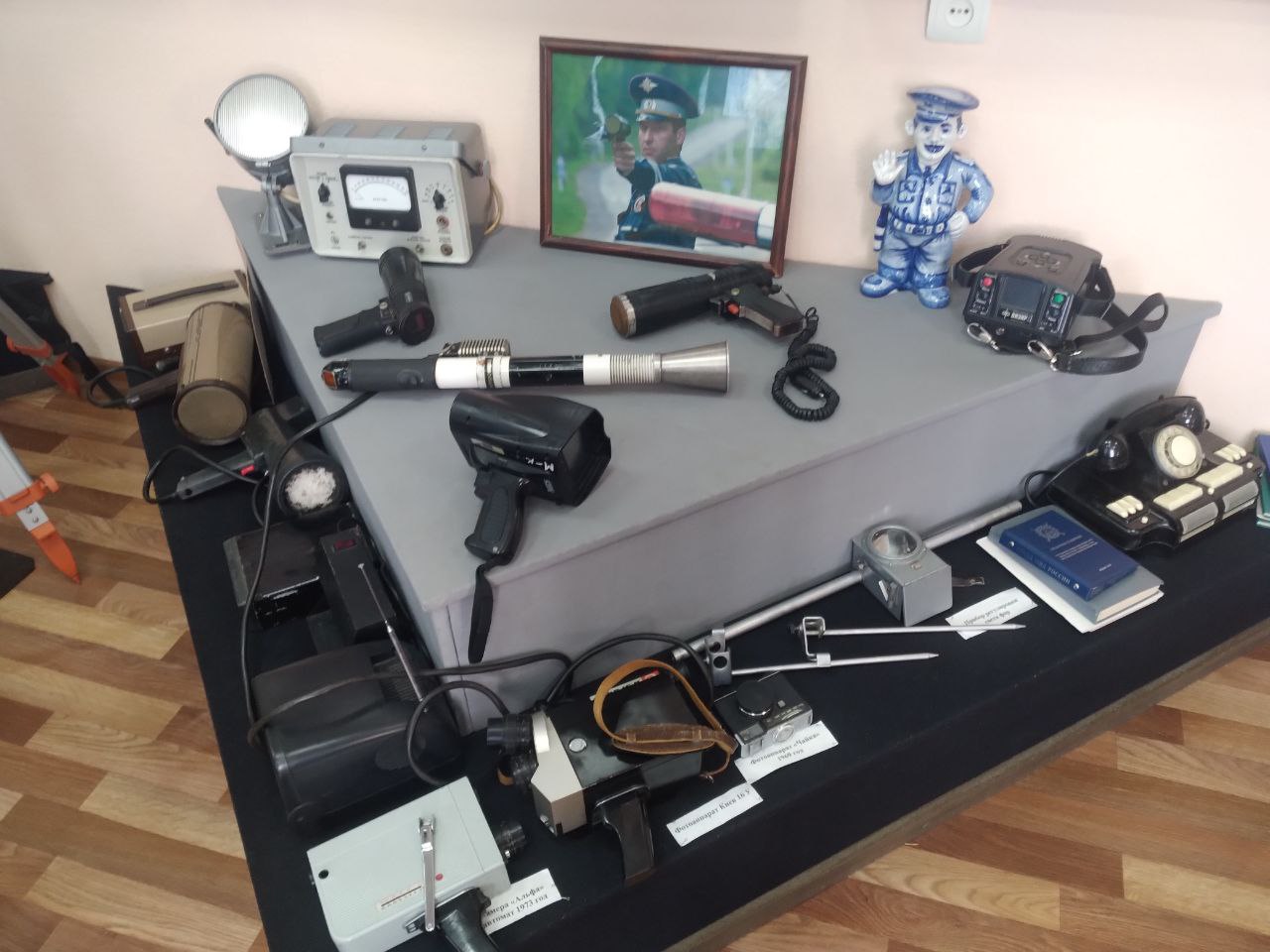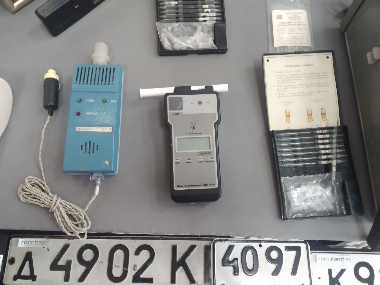 Большая часть экспозиции, как положено, посвящена истории Госавтоинспекции Кузбасса, образованной 26 января 1943 года. В музее ГАИ хранится не только коллекция водительских прав разных дестяилетий. Среди примечательных экспонатов – один из первых отечественных алкотестеров, именуемый трубкой Мохова-Шинкаренко. Как говорят сотрудники музея, осечек у этого прибора не было, за что он был так любим инспекторами ДПС. Экспозицию дополняют радары для измерения скорости разных моделей, работающие на доплеровском эффекте, и дырокол, которым в специальном талоне правонарушений сотрудники ГАИ помечали серьезные недочеты водителей. Три прокола, и с водительскими правами можно было попрощаться на год.