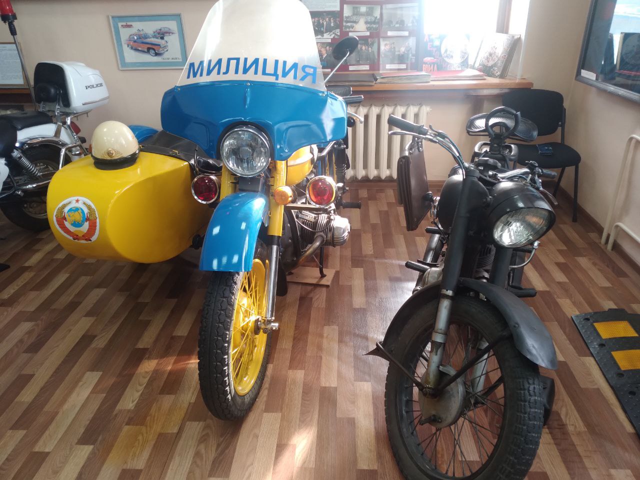 Еще одна гордость музея ГАИ Кузбасса – мотоциклы. Здесь есть и легендарный желто-синий «Урал» с люлькой, и подаренный экс-губернатором Кемеровской области Аманом Тулеевым мотоцикл китайской дорожной полиции. Свой вклад в музейное собрание внесли и ветераны областной Госавтоинспекции. Так, почетный пенсионер ГАИ Игорь Иванов передал коллекцию моделей различных автомобилей, начитывающую более 30 единиц.