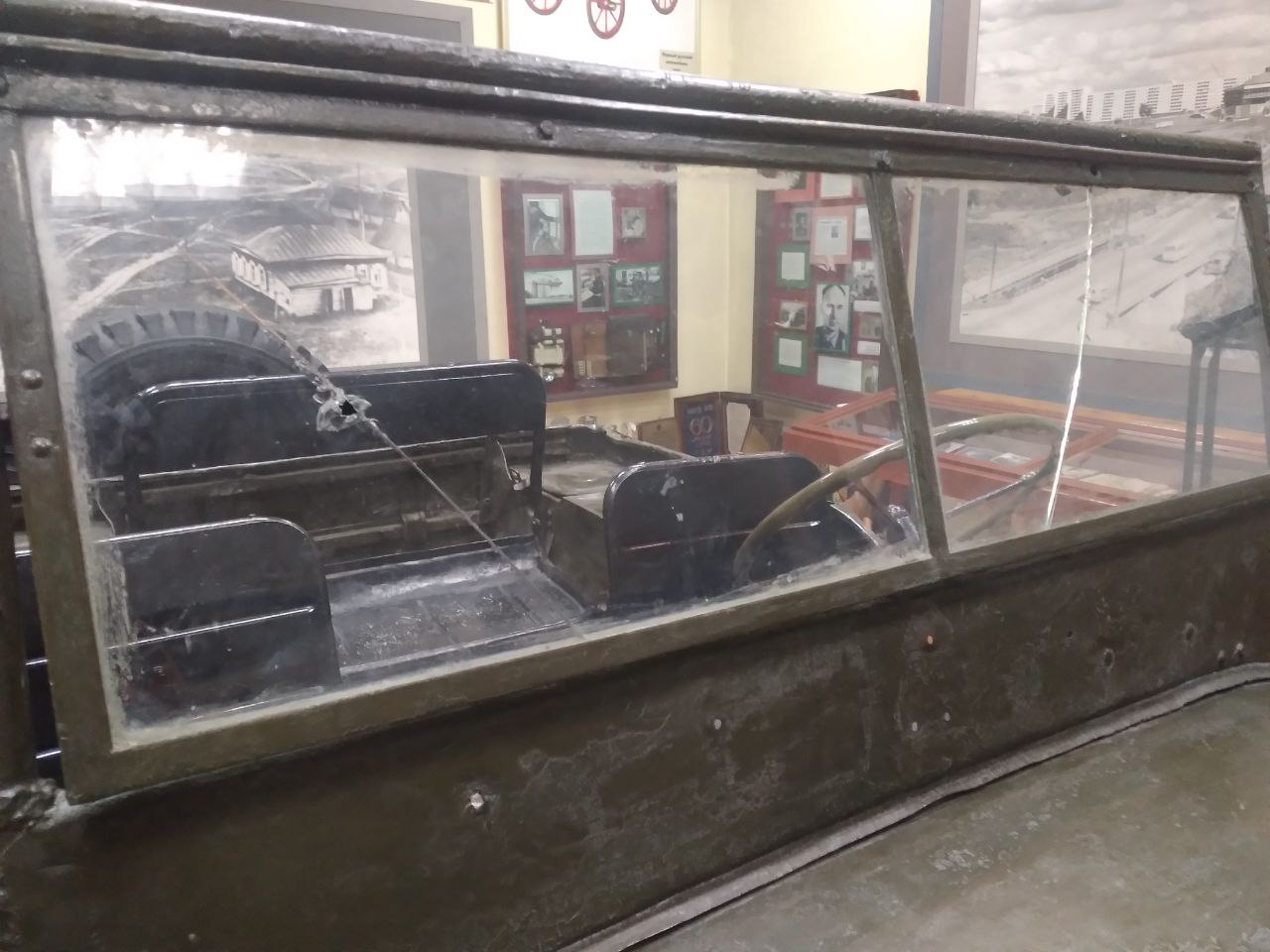 Один из центральных экспонатов – «Форд» первой половины 1940-х гг., который американские союзники по антигитлеровской коалиции доставили в Советский Союз по ленд-лизу. Согласно этой программе, возврату после войны подлежала неповрежденная техника. «Форду» же досталось на фронте. Однако красноармеец, призванный из поселка Хопкино Яшкинского района, починил «американца» и доехал на нем от Германии до родного Кузбасса. По легенде, эту машину сотрудники кузбасской ГАИ выменяли у хозяина-фронтовика на трактор. Ради «Форда» пришлось даже демонтировать часть наружной стены здания, чтобы поднять не проходящую по лестницам 500-клиограмовую машину в находящийся на четвертом этаже музей.