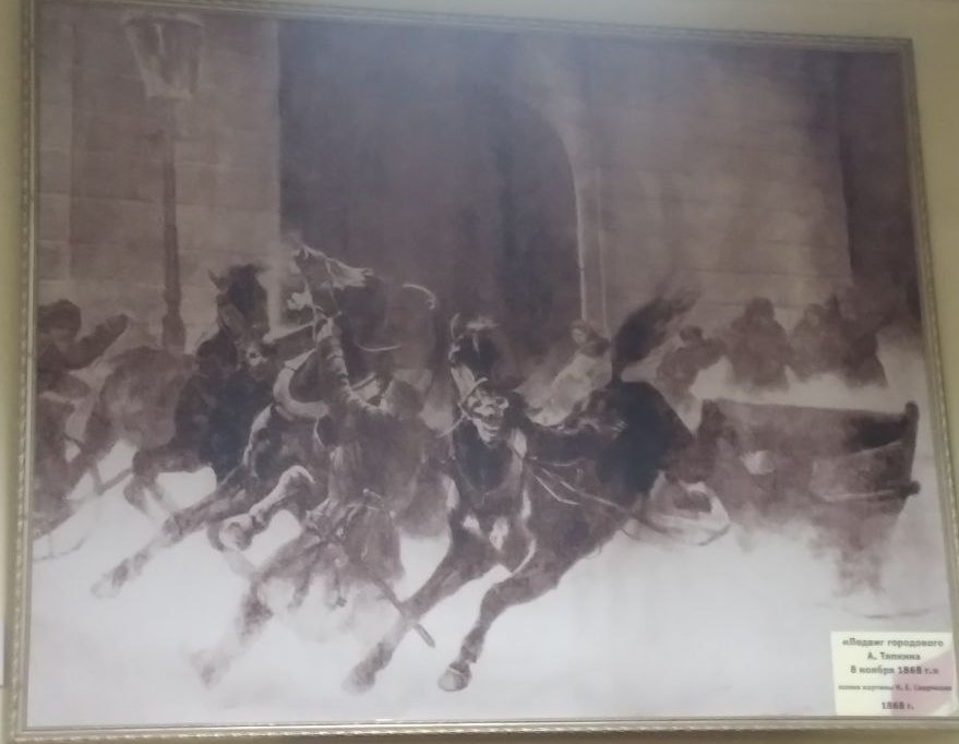 Экспозиция музея ГАИ в здании Главного управления областной Госавтоинспекции в Кемерове начинается с так называемой «коломенской версты», являющейся, по мнению исследователей, первым дорожным знаком в России. Появились знаменитые черно-белые полосатые столбы благодаря царю Алексею Михайловичу, правившему в середине XVII века. Второй по счету Романов на русском троне очень любил ездить в свою резиденцию в село Коломенское, и чтобы кучер не сбивался с пути, вдоль дороги от московского царского дворца до места царского отдыха через кажду версту появились соответствующие указатели. В екатерининское время деревянные «коломенские версты» уступили место каменным верстовым столбам с имперским гербом. В этом же зале висит картина, посвященная подвигу петербургского городового Алексея Тяпкина. 8 ноября 1868 года он ценой своей жизни остановил несущуюся по Невскому проспекту без кучера конную «тройку» и, тем самым, спас прохожих.