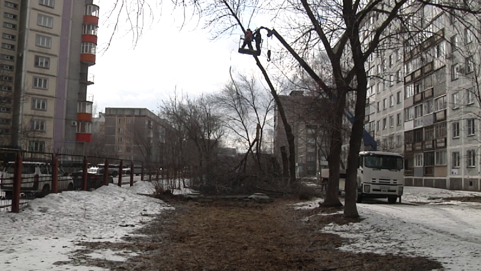 В Центральном районе Новокузнецка за домом 53 на улице Тольятти начали спиливать возрастные деревья. Это подготовительная работа перед тем, как благоустроить юридически безымянный скверик, вошедший в список тех общественных пространств, которые в этом сезоне благоустроят по федеральному проекту «Формирование комфортной городской среды».