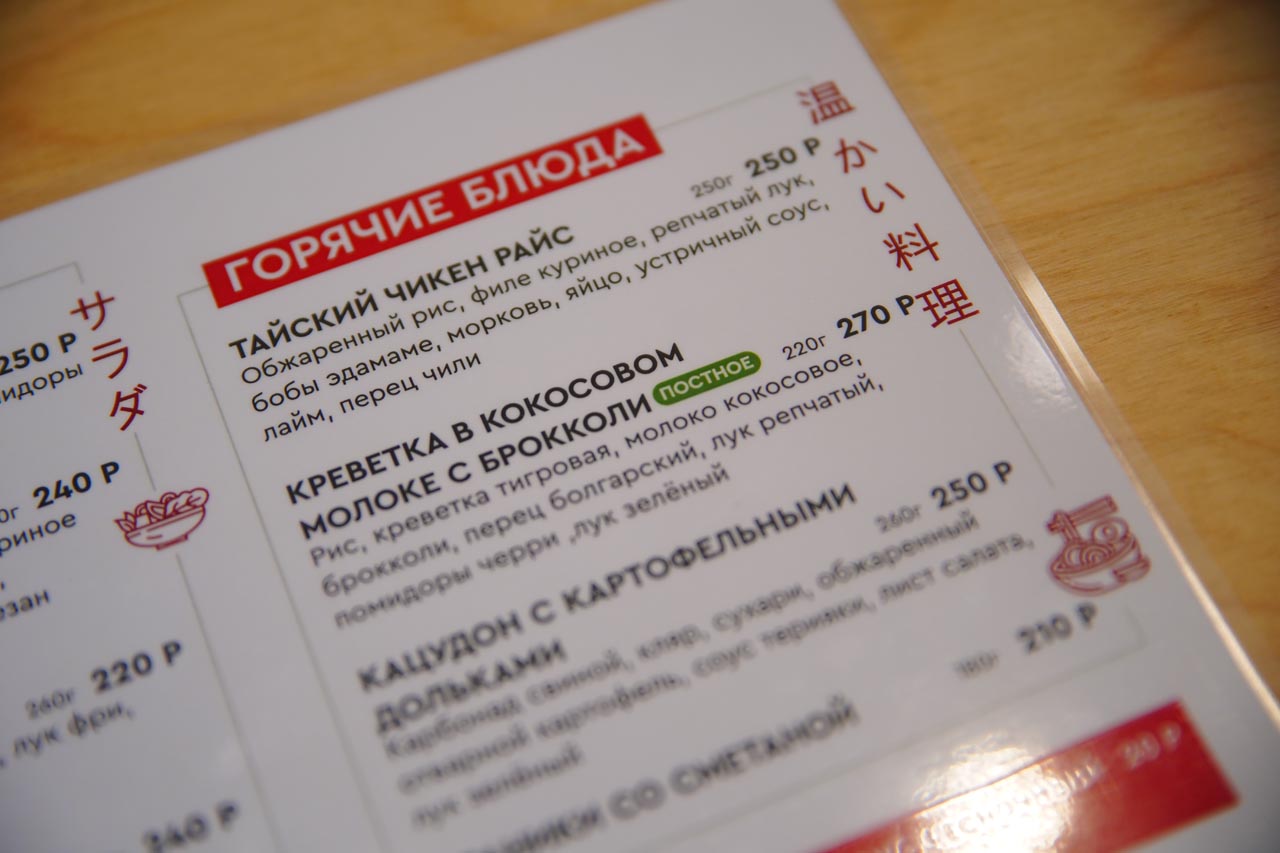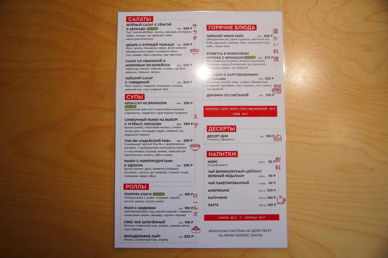 Переходим к самому интересному — явствам заморским. Нам удалось скомпоновать выбор таким образом, чтобы уложить в ограниченный бюджет сразу три позиции. Разумеется, выбирали мы и с учетом того, чтобы попробовать именно азиатские блюда, хотя в меню бизнес-ланча были и варианты ближе к русской кухне.