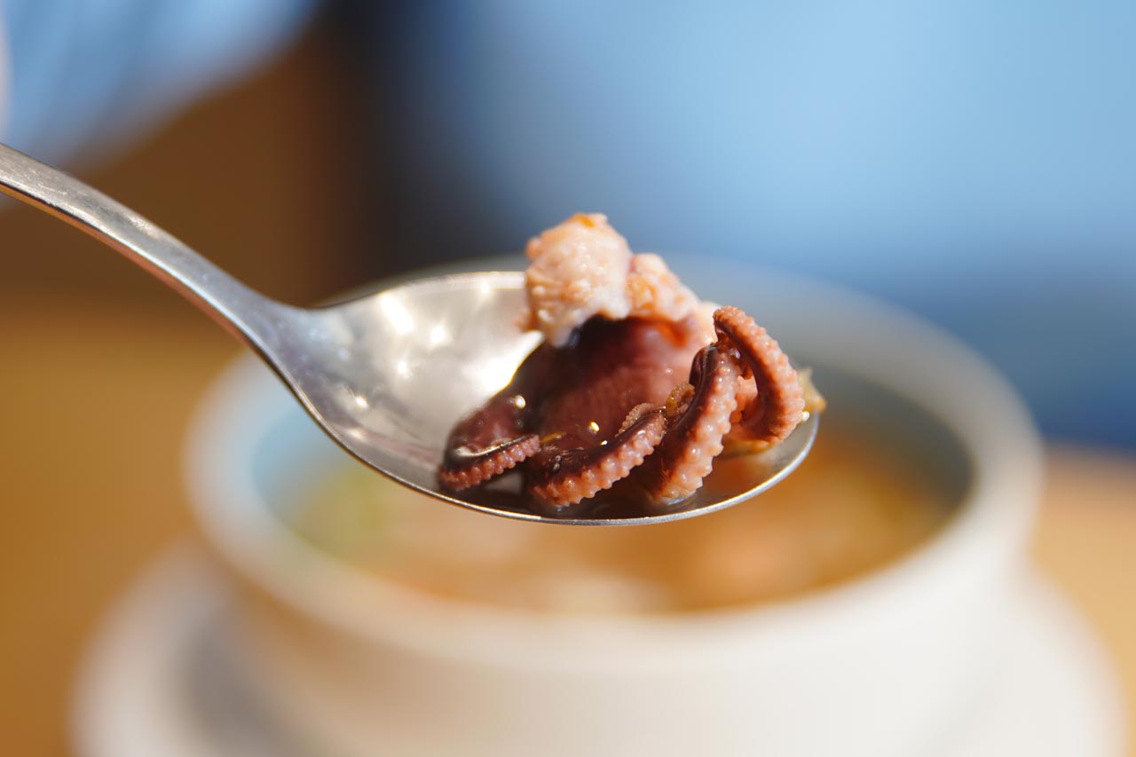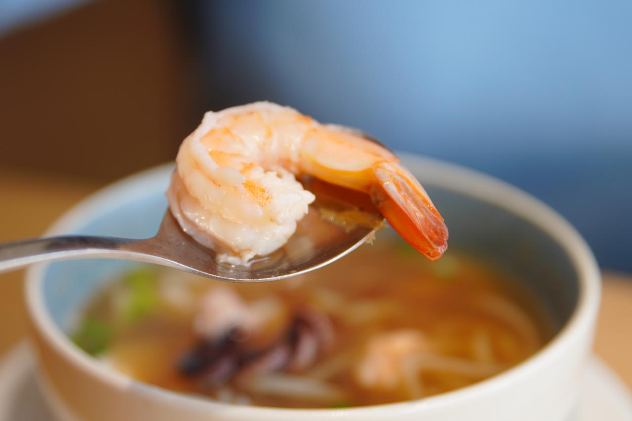 С одной стороны, конечно, множественное число слова «морепродукты» в меню оправдано тем, что этих продуктов два — не один ведь! Но с другой… Впрочем, на вкус нам понравилось, разве что подкачала лапша — она оказалась не очень вкусной, было ощущение, что её разварили.