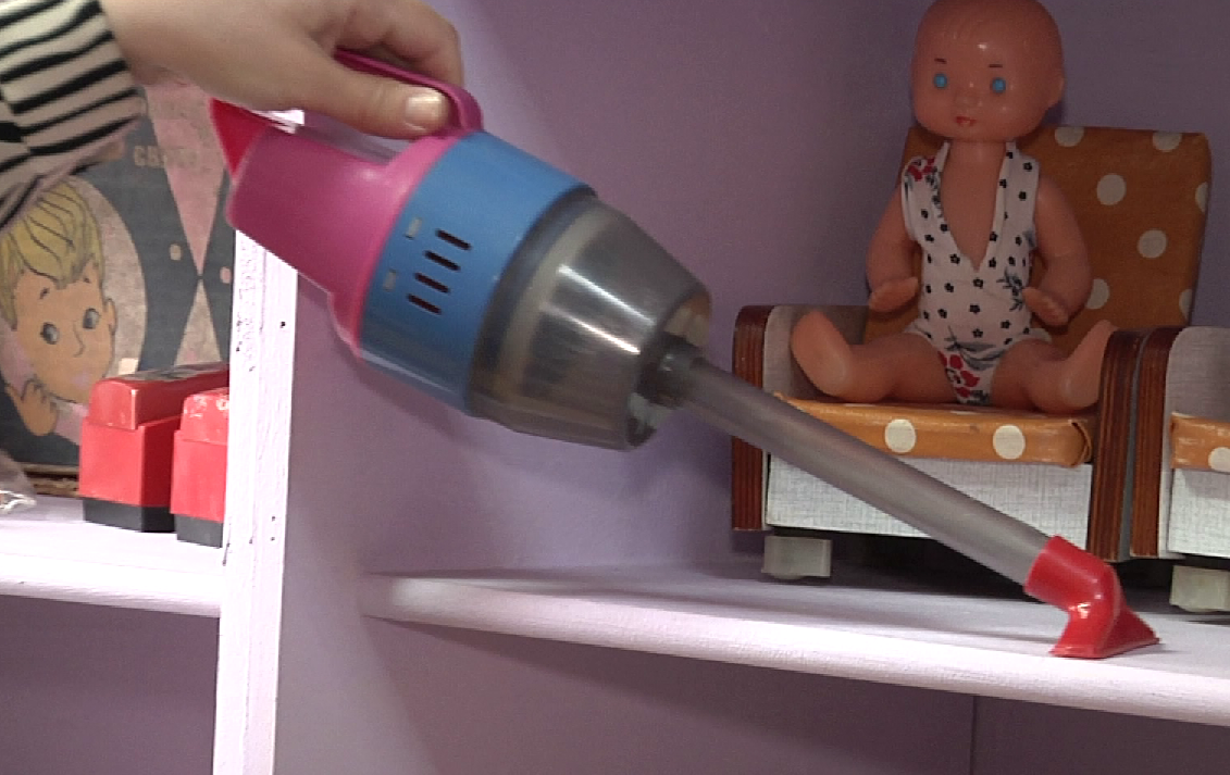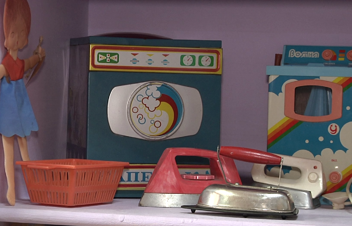 Коляски, швейные и стиральные машинки, утюжки, пылесос, миниатюрное пианино, хоккей, часы и много-много кукол. Каких только нет – и большие, и поменьше, и говорящие, и с голубыми волосами, и в платьях, и в пионерской форме, и в костюмах различных народов…